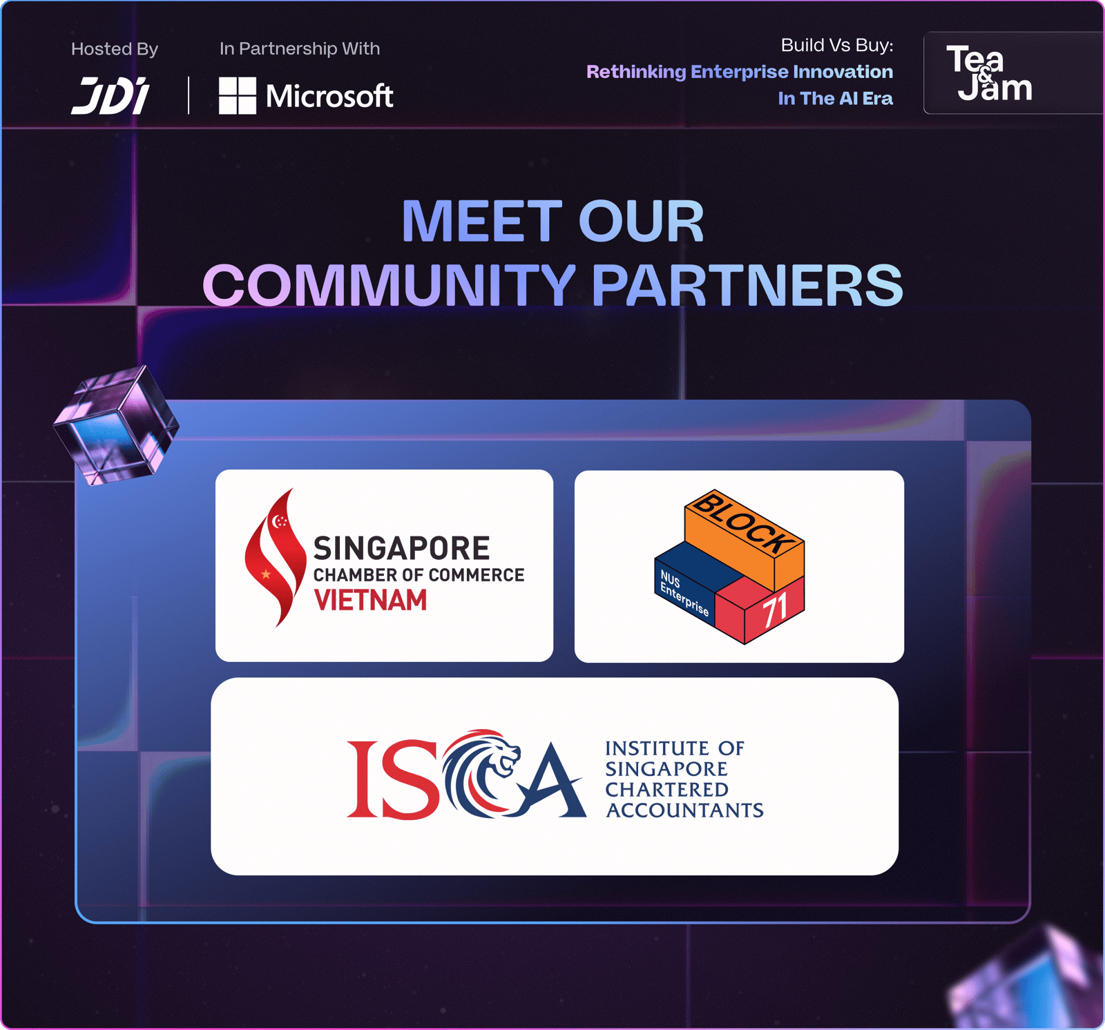 Tea & Jam - Build vs Buy: Rethinking Enterprise Innovation in the AI Era is an exclusive gathering where enterprise leaders, startups, and ecosystem builders come together to explore one of the most critical questions in today’s digital landscape: Should organisations build, buy, or partner to drive innovation in the age of AI?