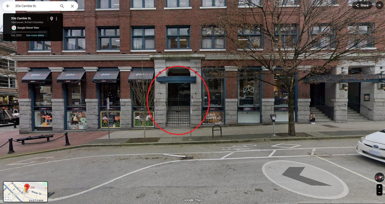 IMPORTANT: the address is 206 Cambie Street, not 220 Cambie Street as previously written!