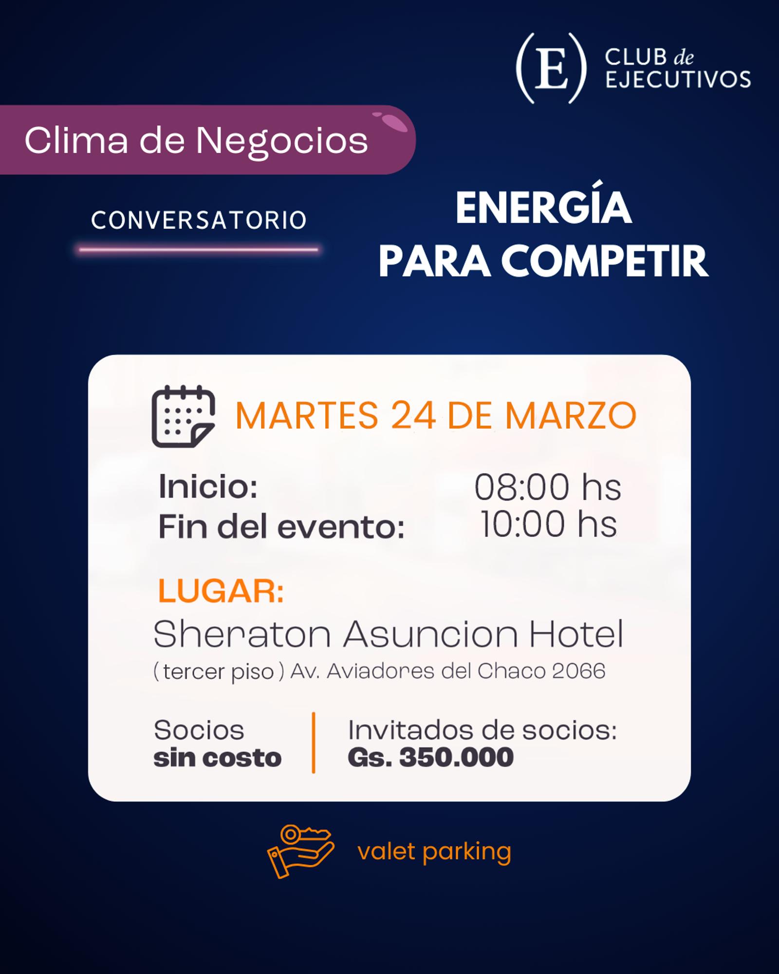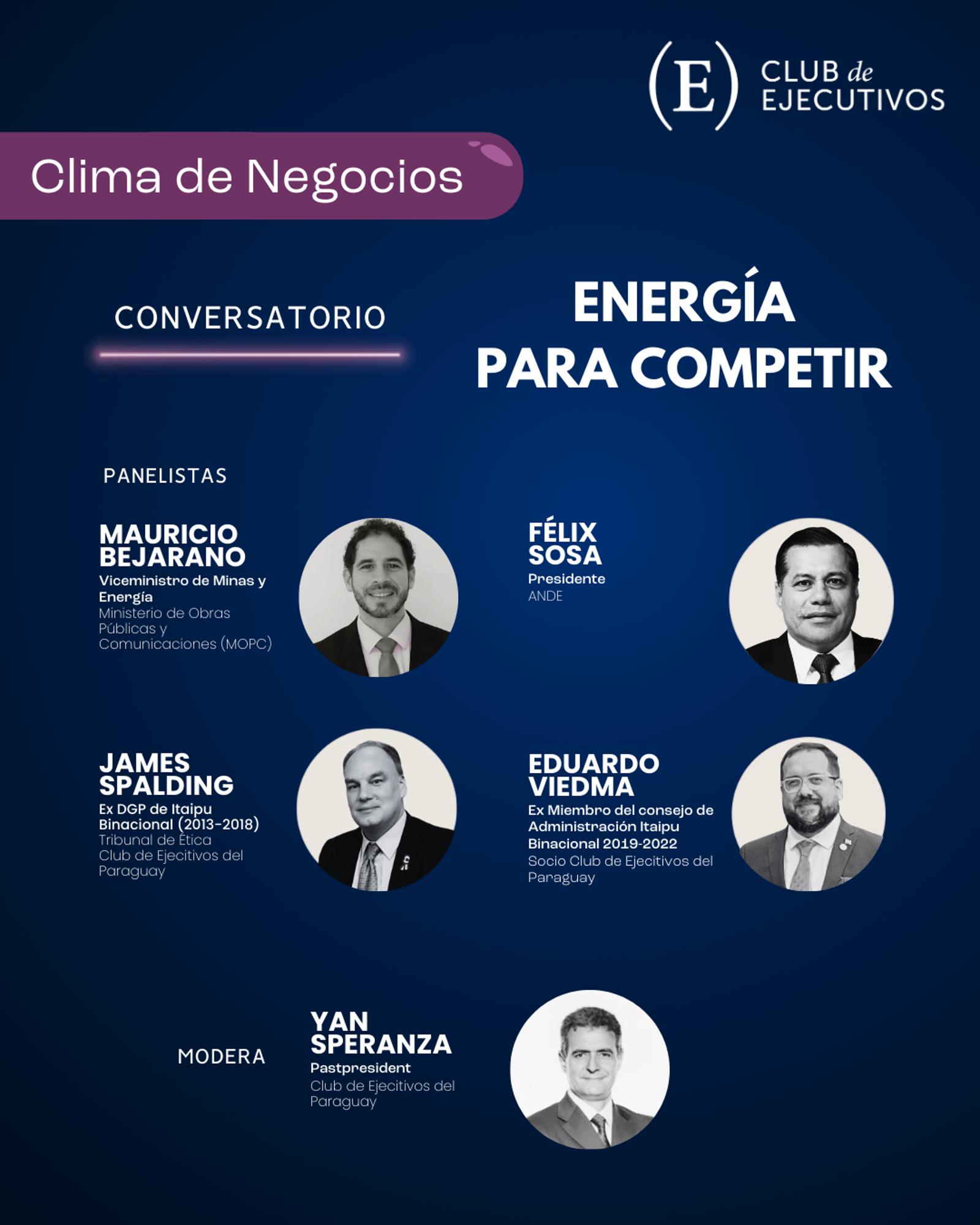 En este conversatorio del eje Clima de Negocios del Club de Ejecutivos del Paraguay, referentes del sector público, académico y técnico compartirán su visión sobre los principales desafíos del sistema energético y las oportunidades que se abren para el país.