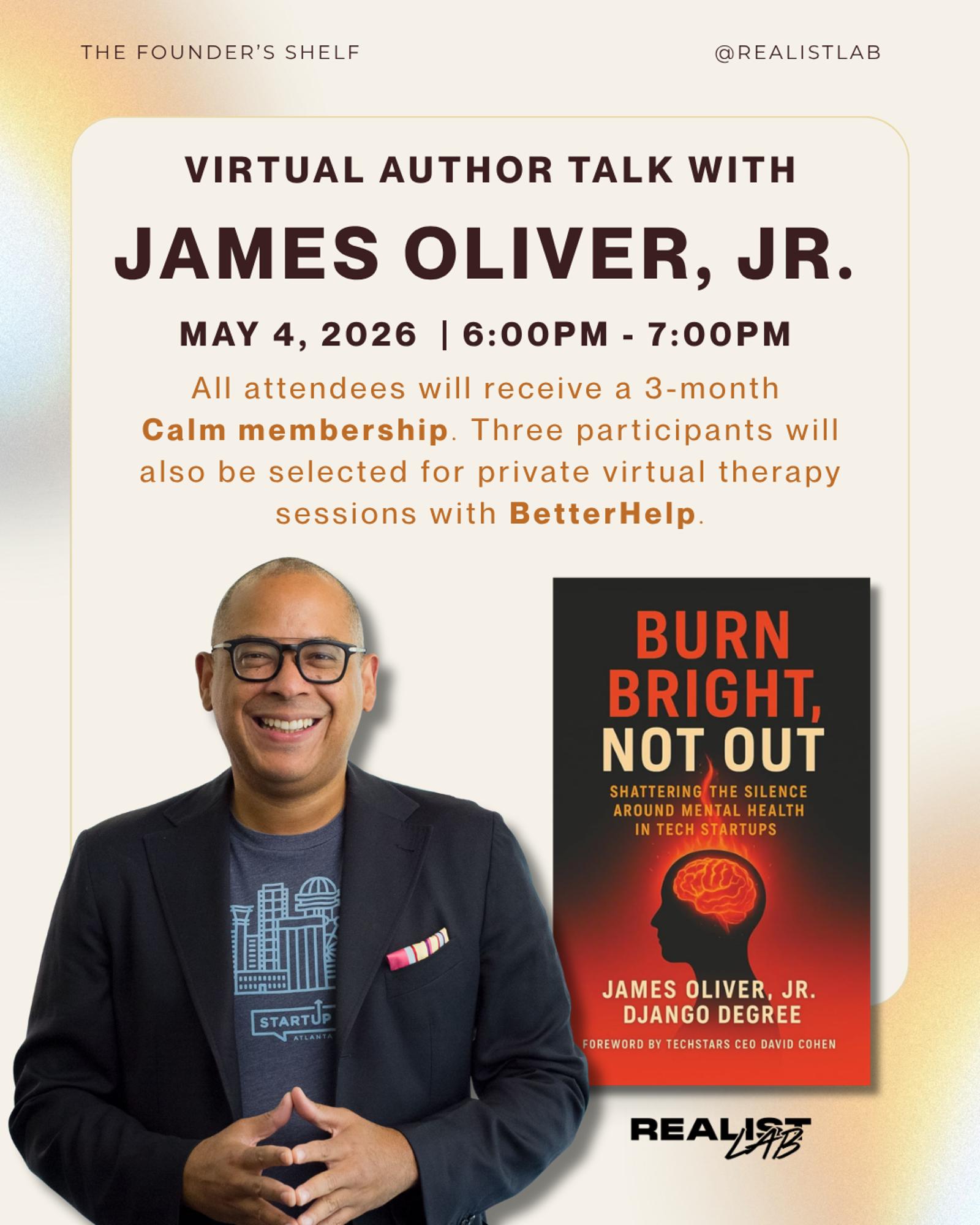 Join us for a live virtual conversation with James Oliver Jr., as we explore founder mental wellness, burnout, and what it takes to sustain yourself while building.
