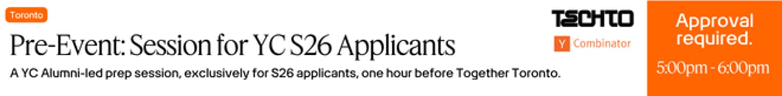 Led by YC Alumni, this exclusive one-hour session gives active S26 applicants a focused session, right before Together Toronto kicks off.