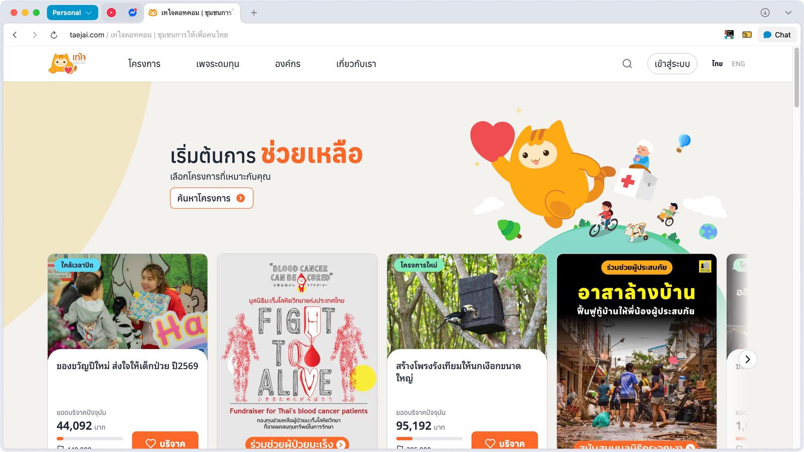 1. เข้าไปบริจาคเงินที่เว็บ Taejai.com (โครงการไหนก็ได้ กี่บาทก็ได้)
