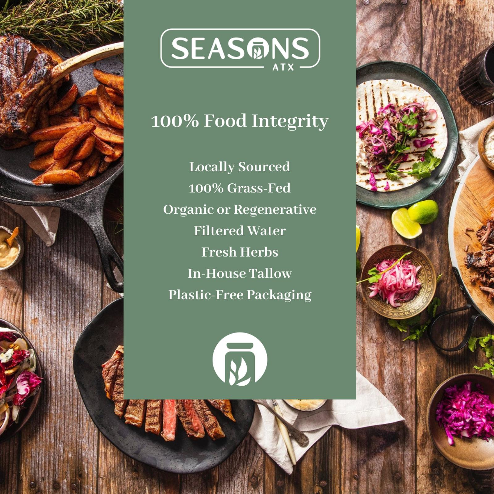 Seasons ATX is Austin’s newest meal service that pairs the highest quality local ingredients with the most artisanal cooking practices to serve you the healthiest food in the most environmentally friendly packaging. Their food is grown locally on organic or regenerative farms. Their cows are 100% grass-fed and grass-finished. Their poultry are pasture-raised and their eggs are soy- and corn-free. In the kitchen, they cook with made-in-house tallow and Zero Acre Oil, and never with seed oils. They cook with filtered water, Himalayan salts, fresh herbs, and 100% integrity. Order today at https://seasonsatx.com/