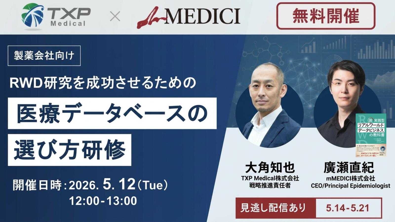 ではどうやって医療データベースを選べばRWD研究を成功させられるのか。サンプルサイズよりももっと大切なことがあるのです。この研修では、製薬企業の経験を有するRWD研究の専門家と、医療データベースの専門家が、それぞれの視点で「正しい医療データベースの選び方」をお伝えします。