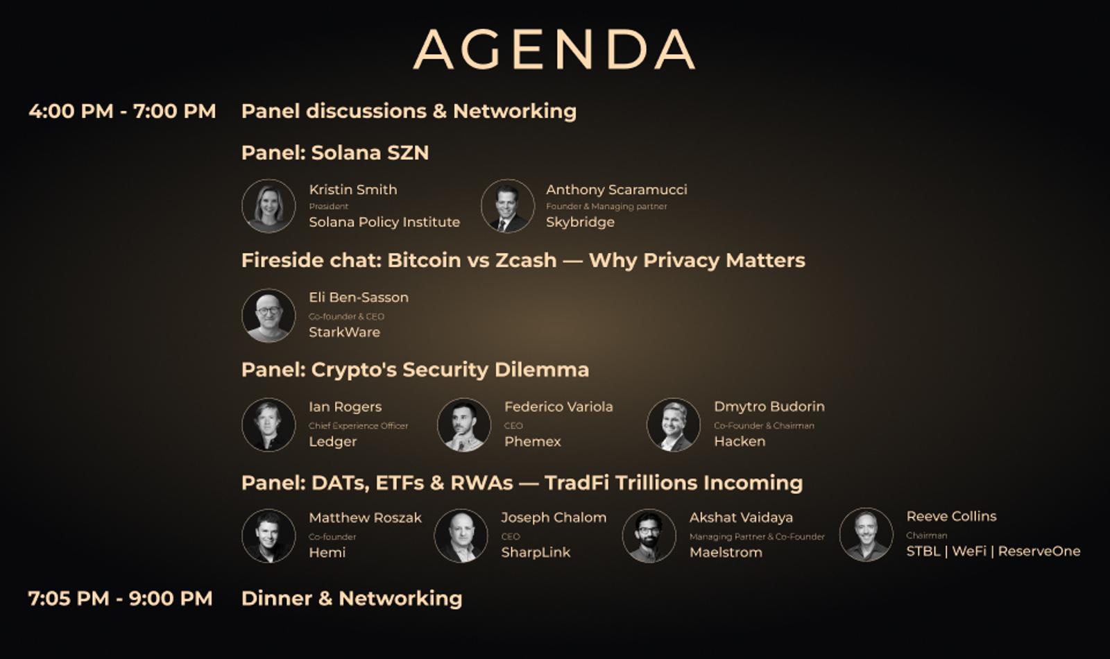 Insights from tier-1 speakers covering topics such as privacy, RWAs, institutional crypto adoption, and Digital Asset Treasuries.