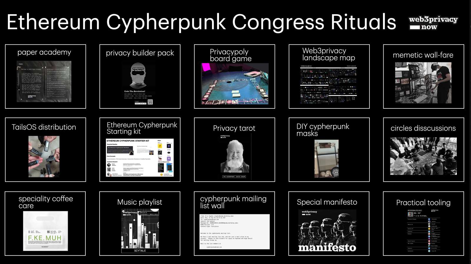 We are talking not only about the existence of privacy-preservation dapps, but Free & Open-source software development, support for free speech and whistleblowers around the world, helping marginalized people get access to the decolonial money system, safe & empowered tech, and last but not least - diverse and active communities of care.
