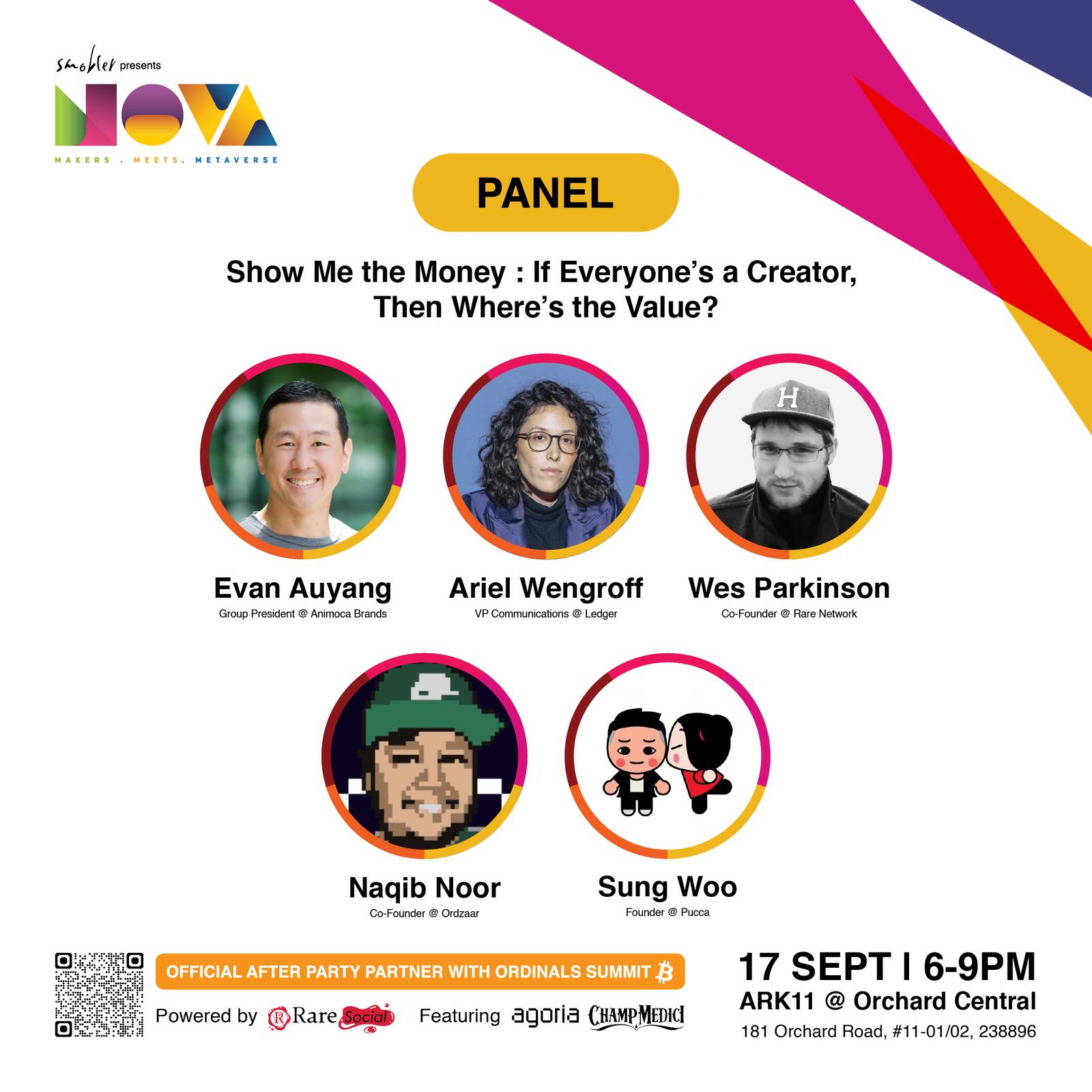 Panel Show Me the Money : If Everyone’s a Creator, Then Where’s the Value? will feature Evan Auyang (Group President, Animoca Brands), Ariel Wengroff (VP Communications, Ledger), Naqib Noor (Co-Founder, Ordzaar), Sung Woo (Founder, Pucca), and Wes Parkinson (Co-Founder, Rare Network).