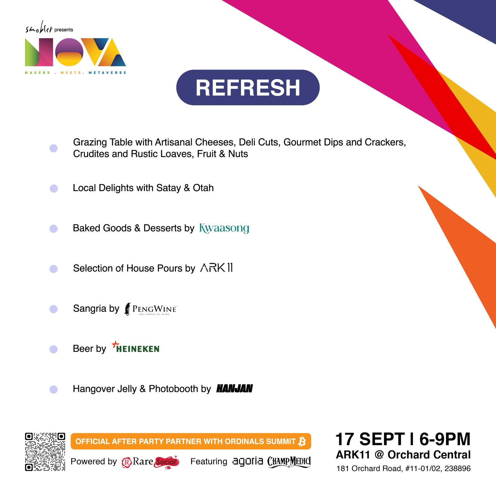 REFRESH with local delights and decadent grazing table alongside house pours by ARK11, sangria by PengWine, beer by Heineken, and fun treats from Hanjan & Kwaasong.