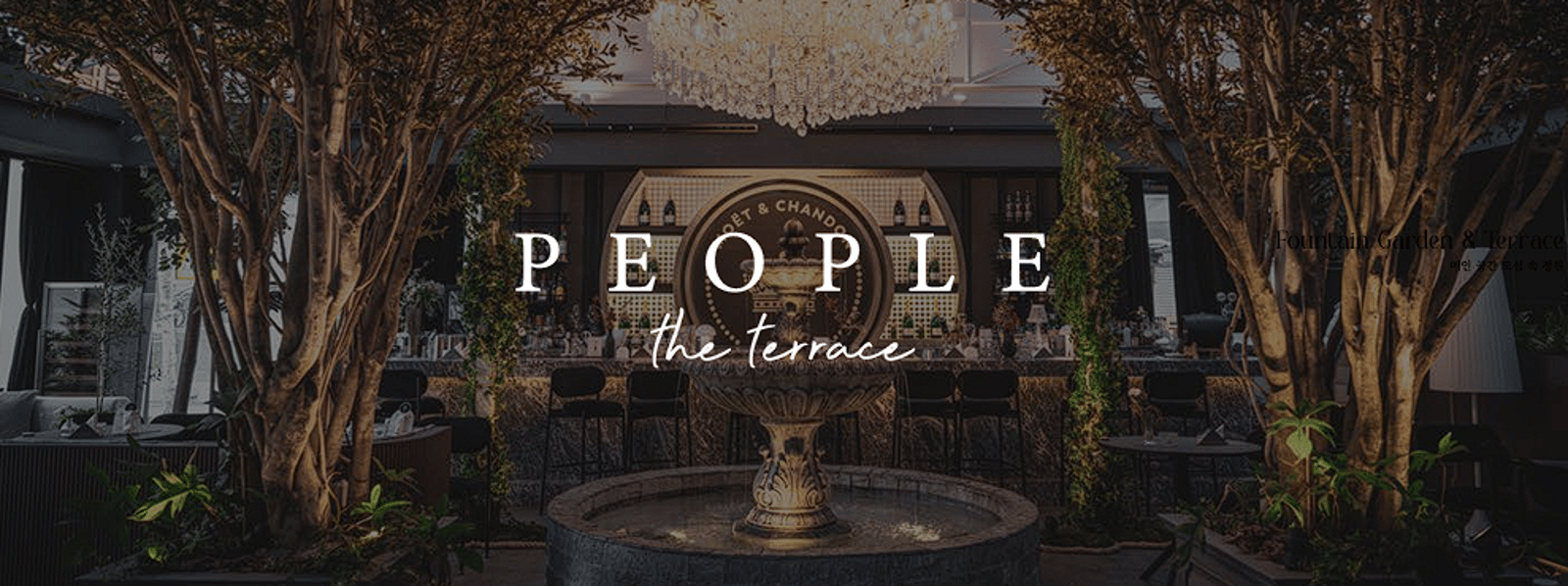 낭만적인 **파운틴 가든(1F)**과 프라이빗한 **인더스트리얼 바(2F)**가 있는 **‘피플더테라스’**에서 진행됩니다.