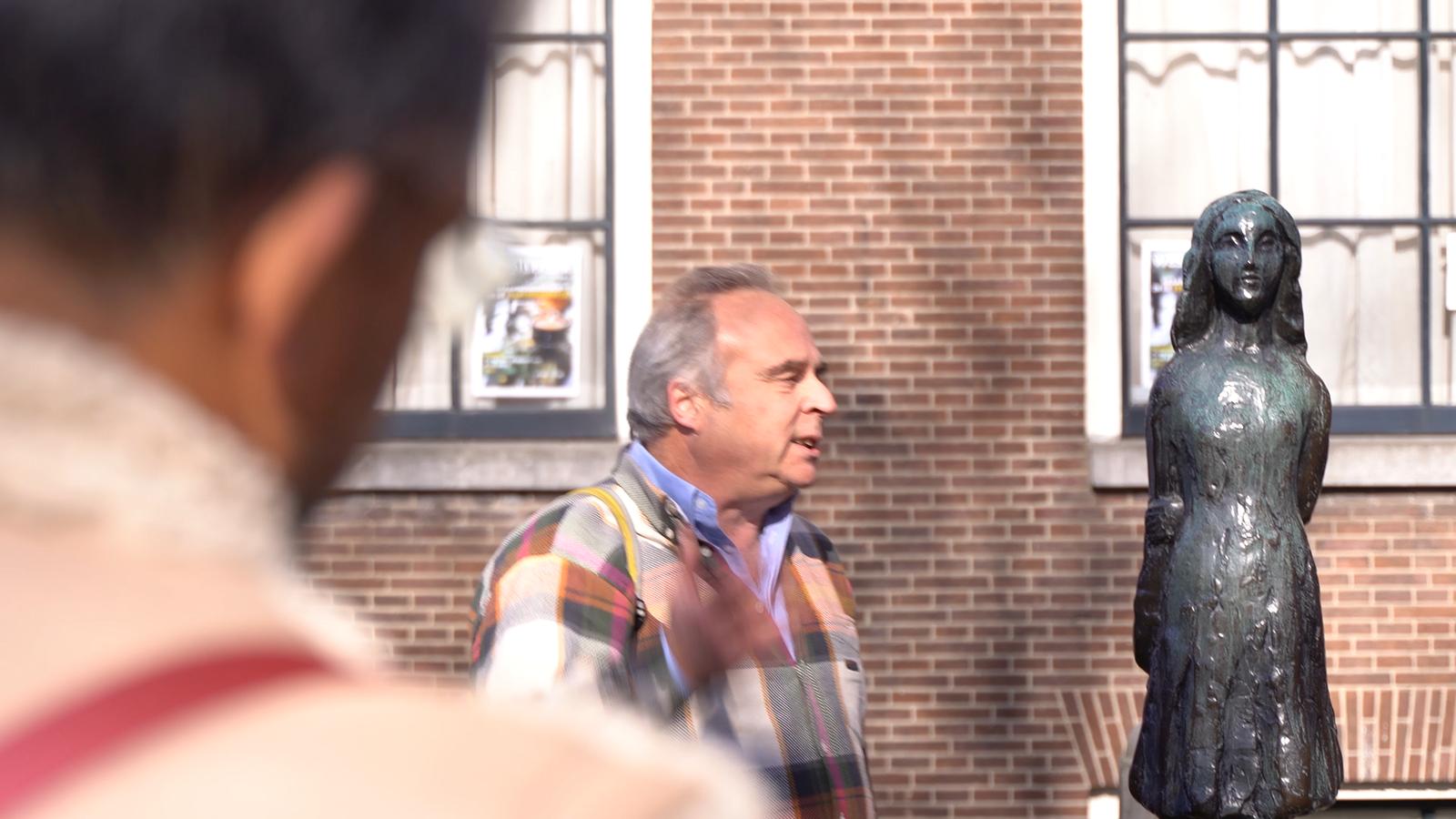 Tijdens de tour brengt hij historische context en verbindt hij verschillende verhalen en perspectieven langs de route. Met een open, reflectieve stijl begeleidt hij de gesprekken tussen deelnemers en helpt hij ruimte te creëren voor uitwisseling, vragen en nieuwe inzichten.