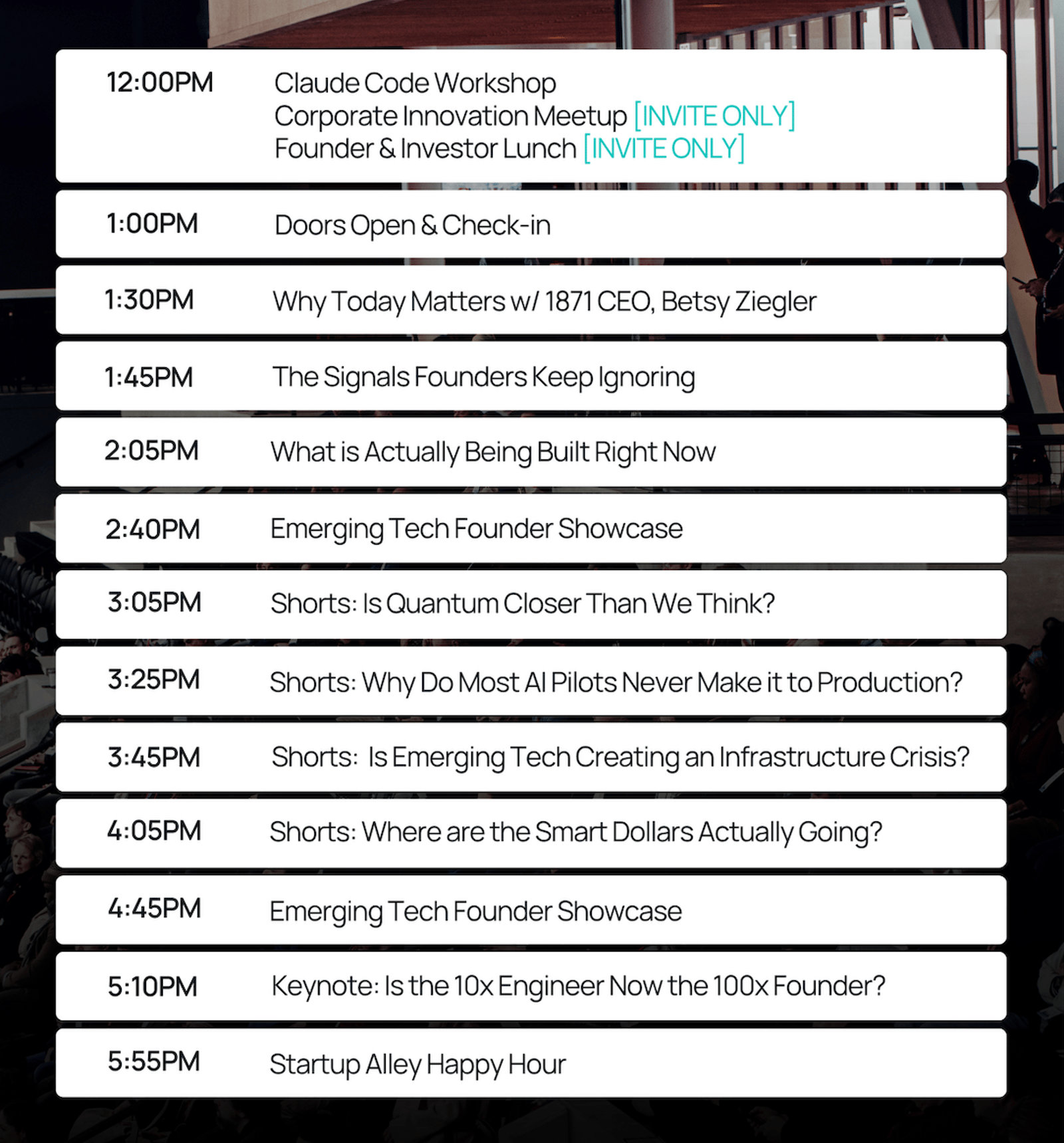 Fast, focused sessions on the hardest questions in emerging tech, no fluff, no endless panels.