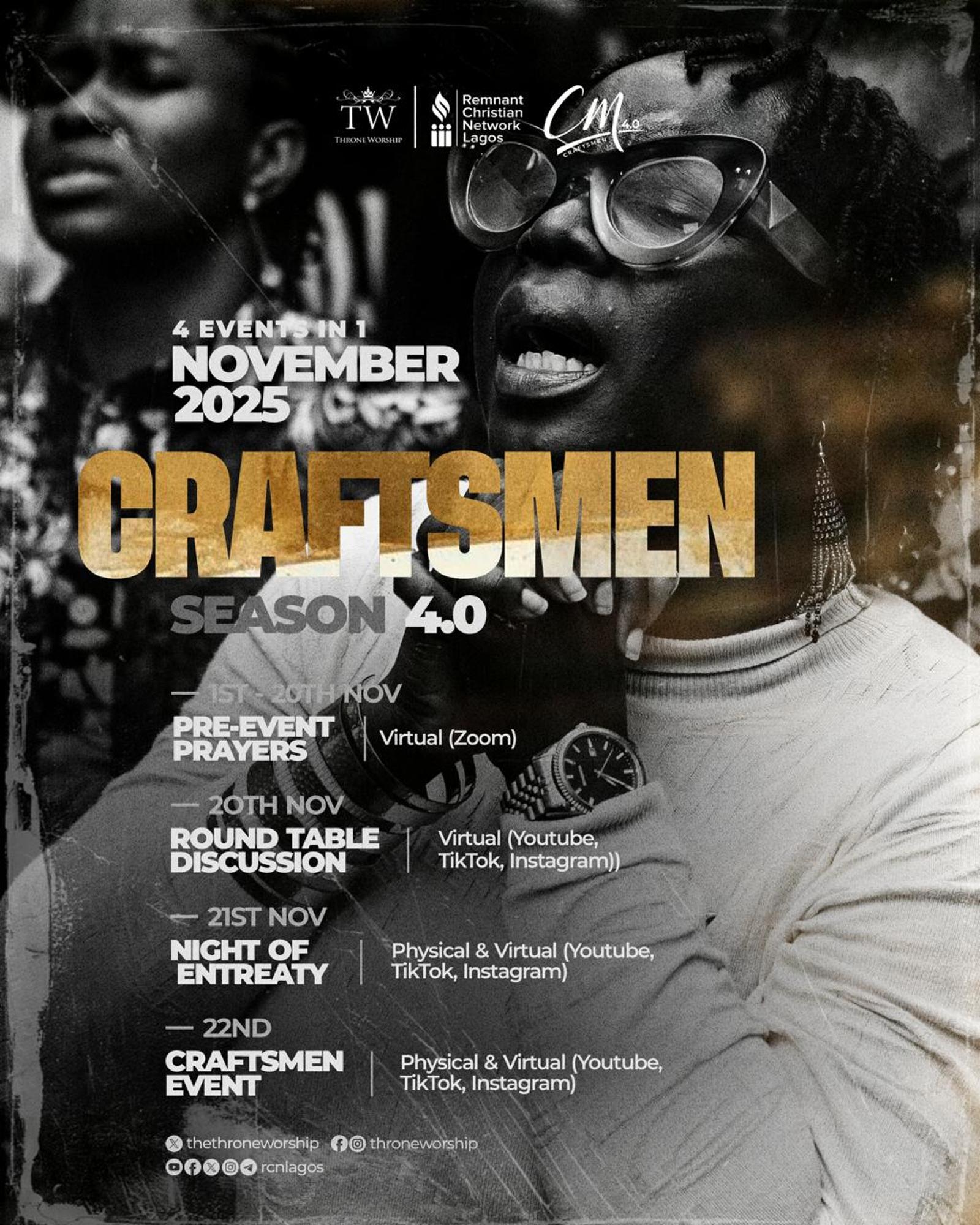 The CRAFTSMEN is an initiative of Remnant Christian Network (RCN) & Throne Worship, specially tailored for Marketplace Apostles (Entrepreneurs, Intrapreneurs, Businessmen & Women, and Career Professionals to take their mantles as Marketplace leaders as God has ordained it.
