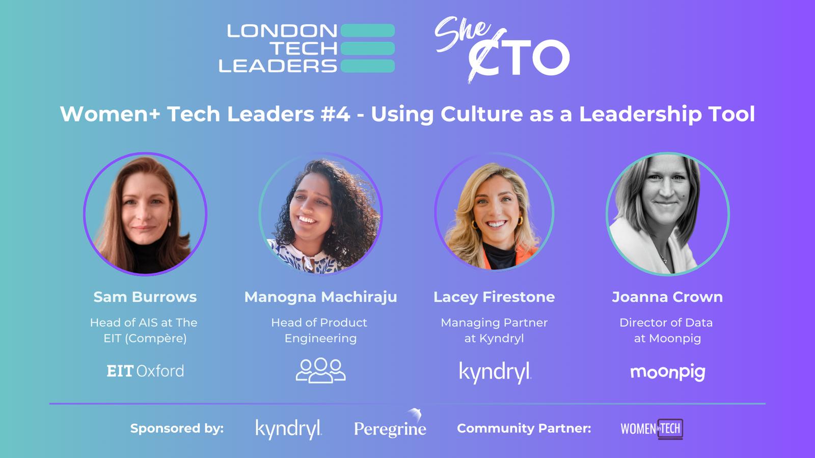 Culture is a very important part of technology teams, and as leaders the burden to create the ‘perfect’ culture. Women in tech often end up being the ‘culture carriers’ - sometimes by choice, sometimes not, this event is a chance to learn from your industry peers on how they have created culture at their organizations.