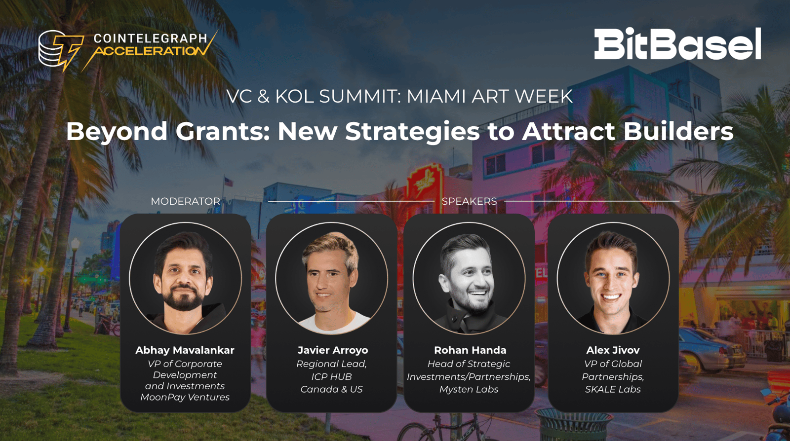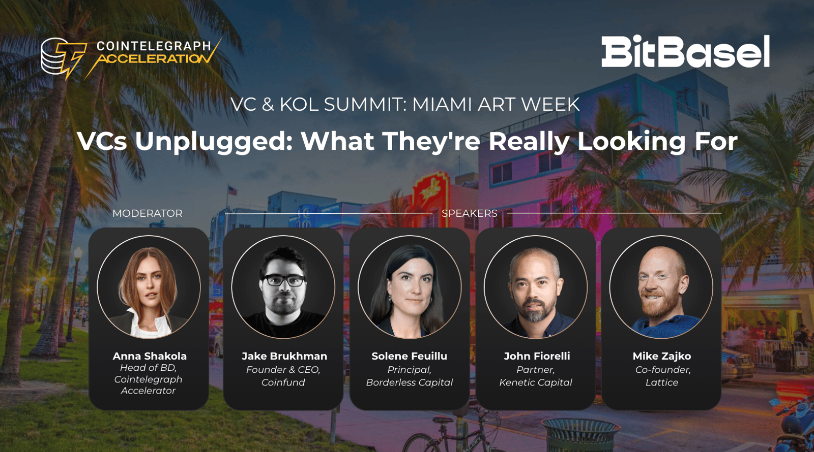 Cointelegraph Accelerator, in collaboration with BitBasel, invites the brightest minds in blockchain to an exclusive networking event during Miami Art Week. Tailored for venture capitalists and startups, this gathering offers a unique opportunity for selected startups to pitch their ideas to a curated audience of VCs, infrastructure providers, and key opinion leaders (KOLs).