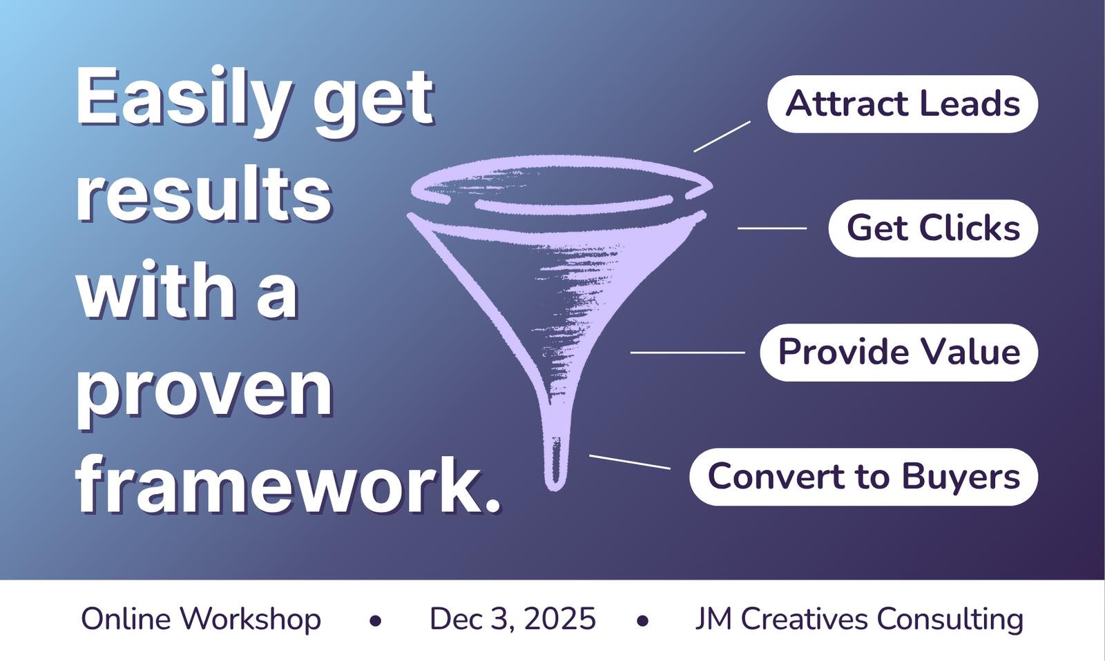 In this workshop, you’ll learn how to reverse-engineer that funnel — starting from your goal and working backwards through your CTA, landing page, and ad creative.