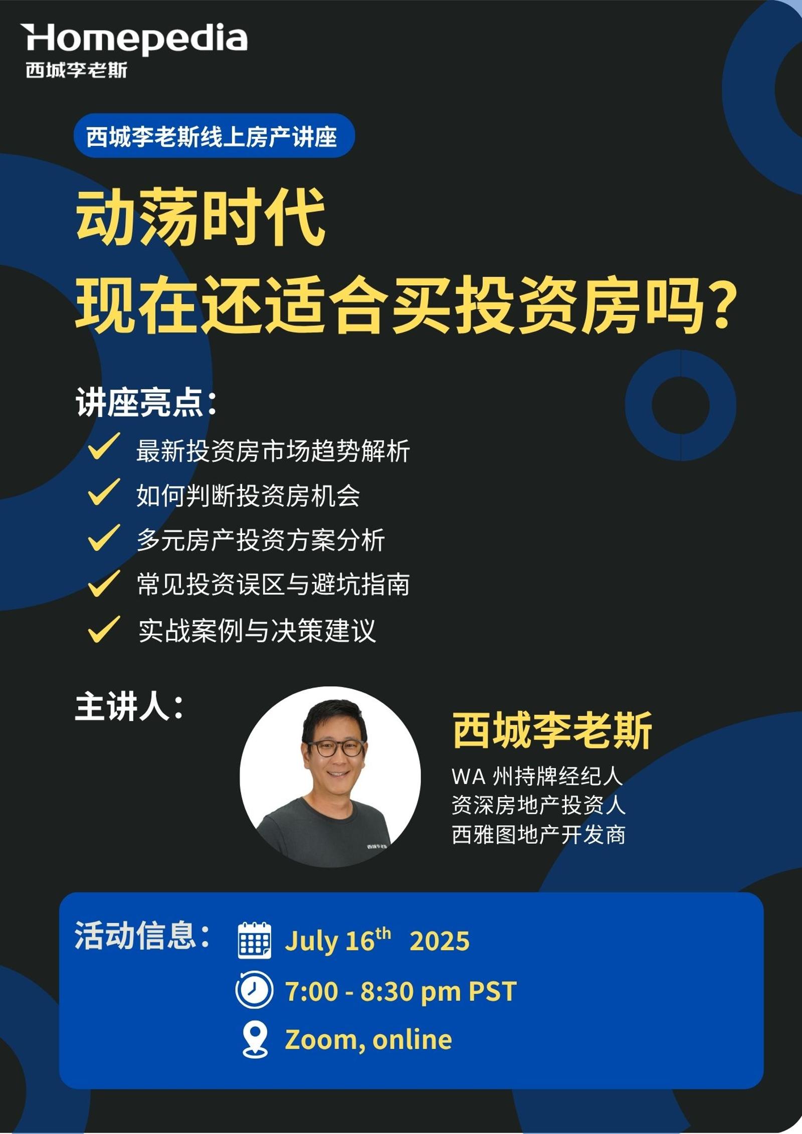 为此,我们特别举办本次【投资房市场趋势讲座】,邀请西雅图本地资深房产经纪人、深耕多年投资市场的专家,与大家深度探讨最新市场趋势、机会与挑战,分享实操经验,帮助大家在不确定时代做出理性决策!