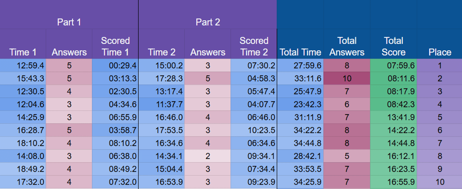 โโฑ๏ธ When you finish and submit track, your total time is calculated. For every correct answer, 2.5 minutes are subtracted from your total time.