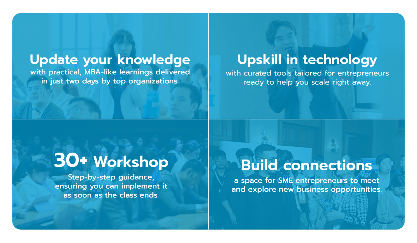Experience two full days of hands-on workshops led by top industry experts — learn practical skills, apply them immediately, and take home real tools you can use to grow your business.