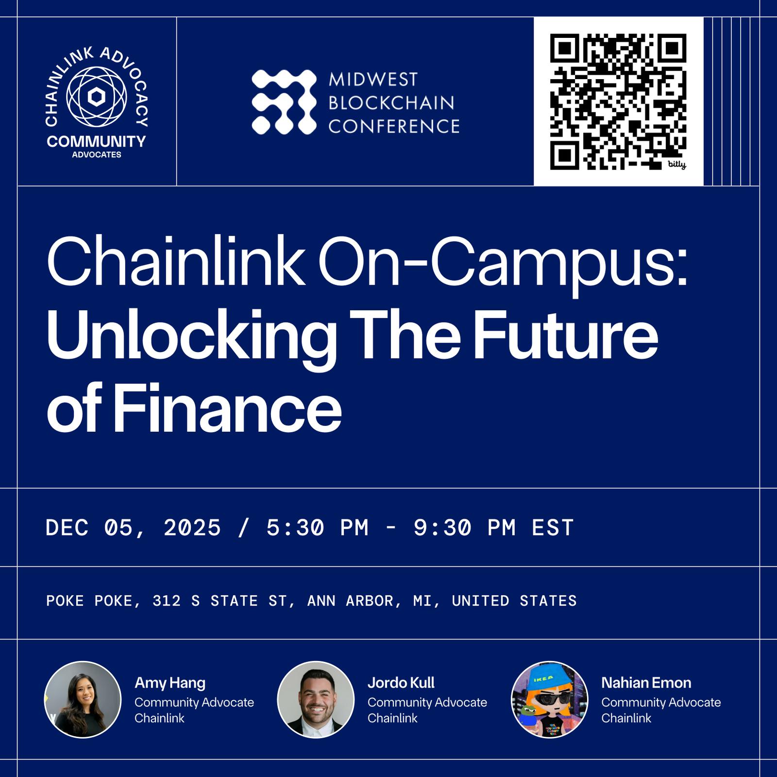 The event mixes education, hands-on exposure, and community networking, giving students a chance to learn from advocates, interact with real tools, and meet fellow builders across the Midwest. Students will enjoy a relaxed networking mixer, mint an exclusive POAP, and connect with Chainlink community advocates who are growing the Detroit and Midwest developer ecosystem.