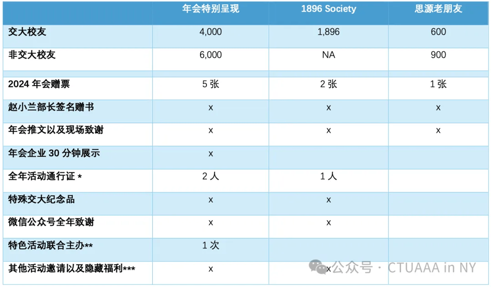 交通大学纽约校友会 2024年会 报名表