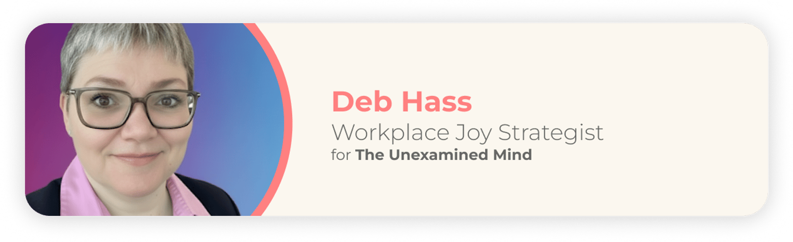 When she’s not building new rituals for remote teams or turning workplace pain points into punchlines, you can find Deb sipping a Kickstart (or Diet Pepsi), naming her ChatGPT instance Quinn, and helping others unlock their most joyful, human way of working.