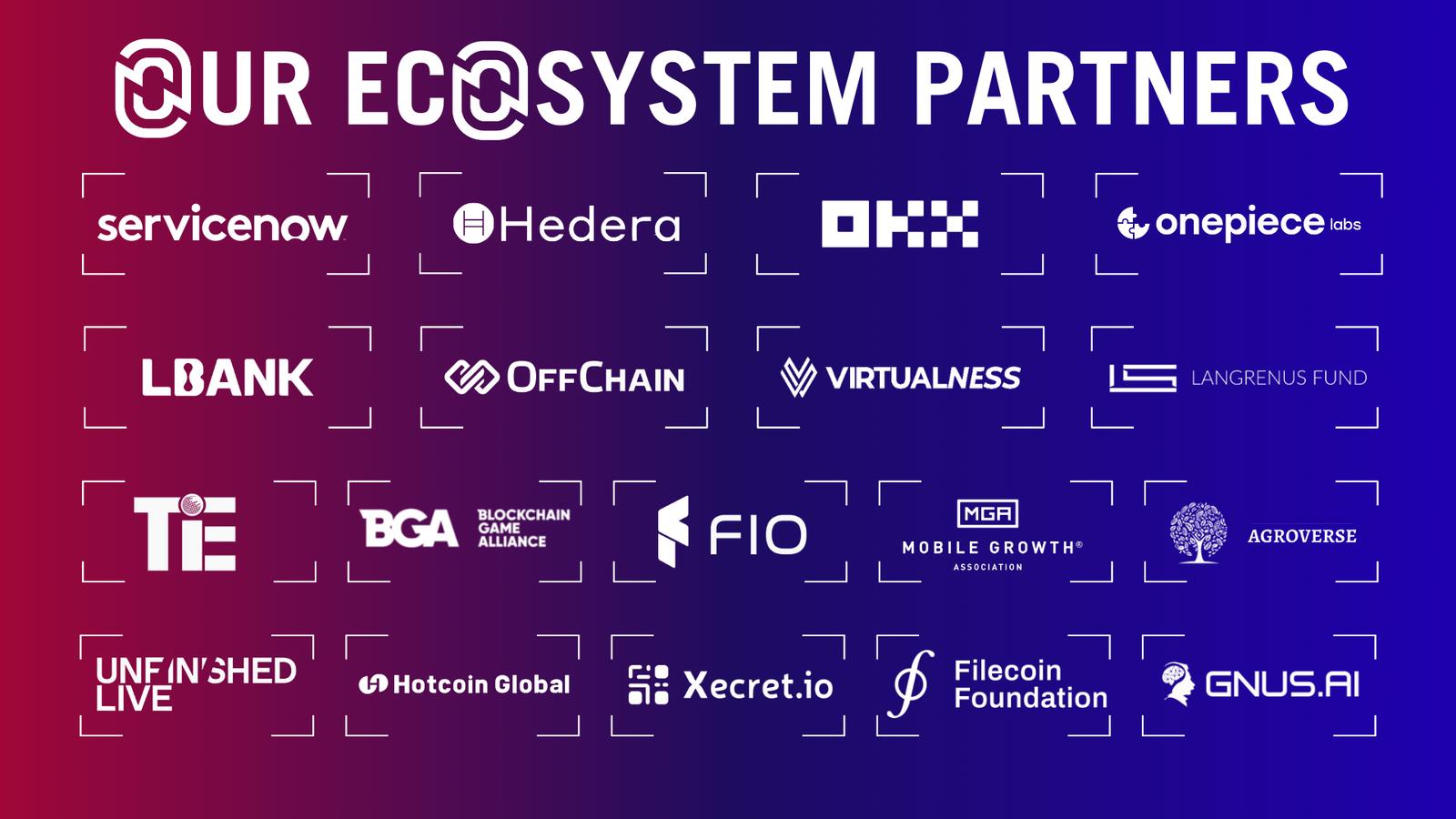 Servicenow | Hedera | OKX | OnePieceLabs | Lbank | Offchain Global | Virtualness | Langrenus Fund | TiE | Blockchain Game Alliance | Fio | Mobile Growth Association | Agroverse | Unfinished Live | Hotcoin Global | Xecret.io | Filecoin Foundation | Gnus.ai