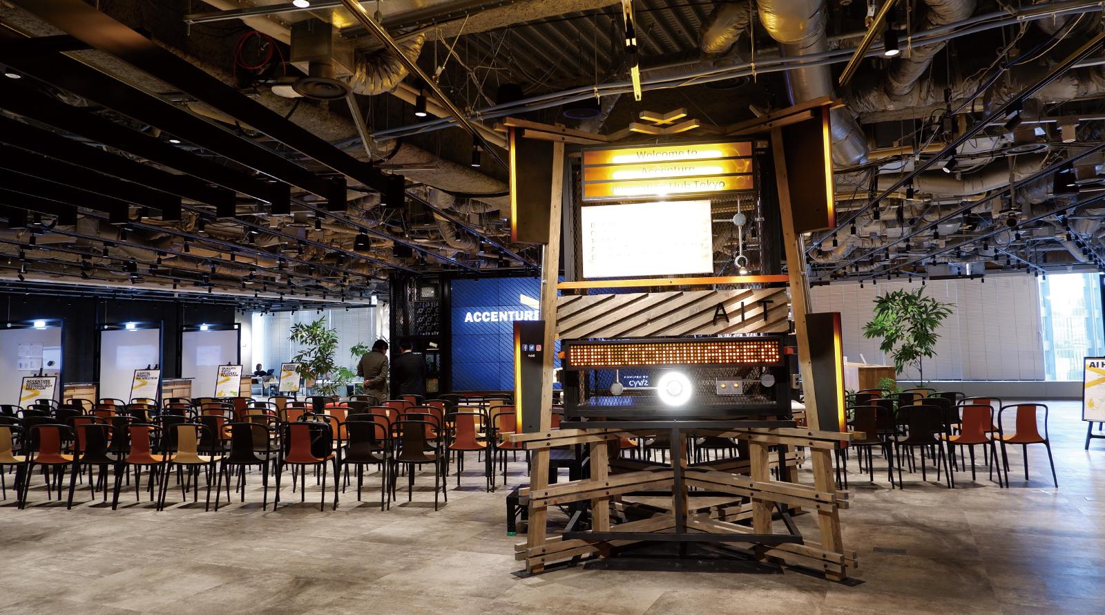 会場パートナーとなるアクセンチュアのサポートのもと来場者へコワーキングスペースの提供も行います。WebXで出会ったパートナーとの打ち合わせや緊急のミーティングなどが必要な方は会場内のコワーキングスペースを無料で利用できます。