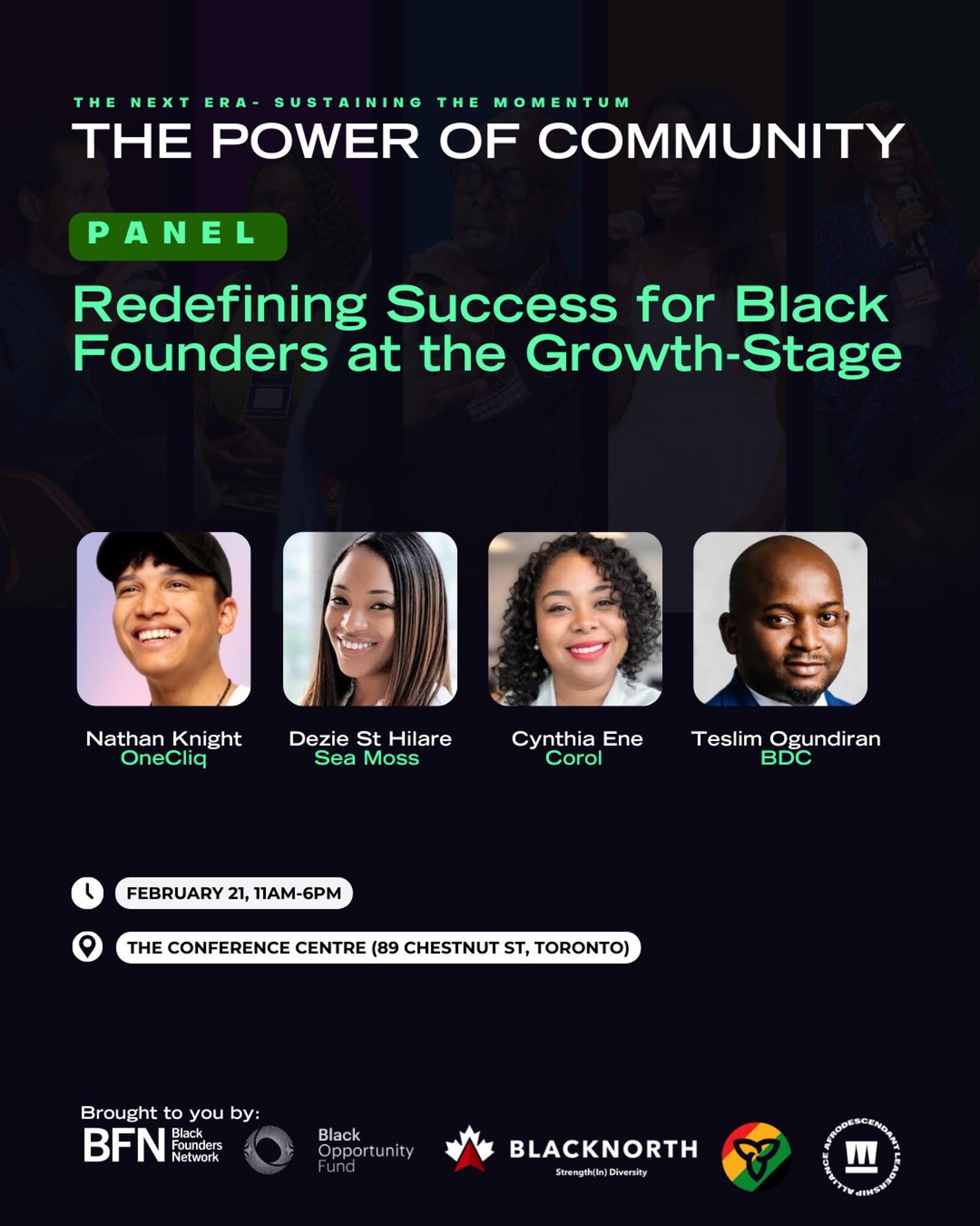 In each of the last 3 years, the Power of Community Symposium brought together Canada's most successful Black founders, professionals, investors, and ecosystem partners - to drive collaboration in our shared missions. This year's theme - The Next Era - is focused on how we collaboratively sustain the momentum we have created. How do we ensure that the impact of our programs & funds outlive all of us?