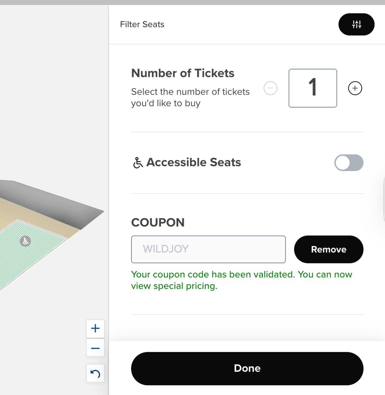 Now click on the lawn section of the map and it will show the special offer deal on the right hand side. Adjust for the quantity of tickets you would like and continue to check out. As a reminder, it will say “buy seat” but the lawn section is general open seating first-come-first serve. :)