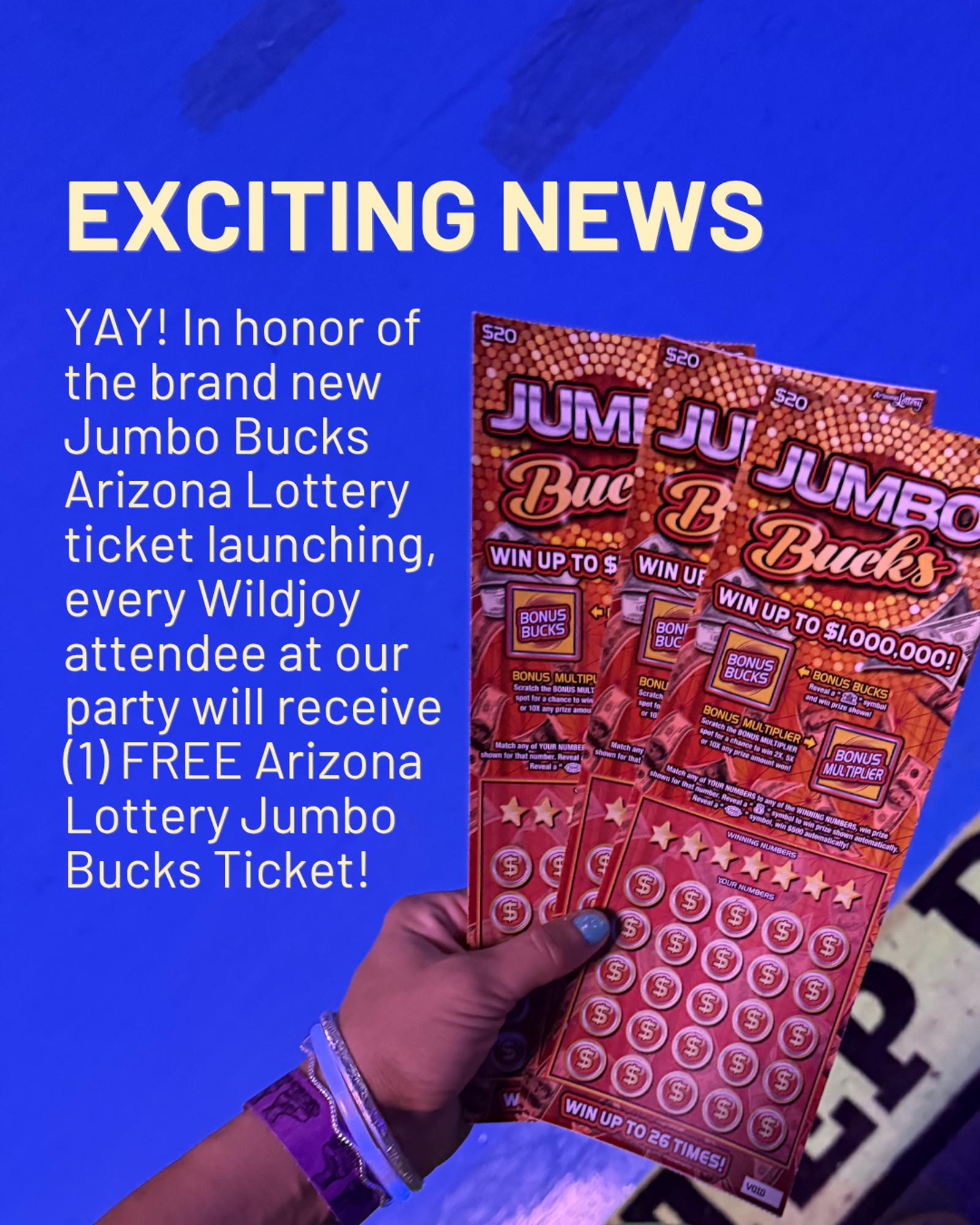 ​(1) Jumbo Bucks Arizona Lottery Ticket for every ticket holder (thanks to our friends at AZ Lottery!)