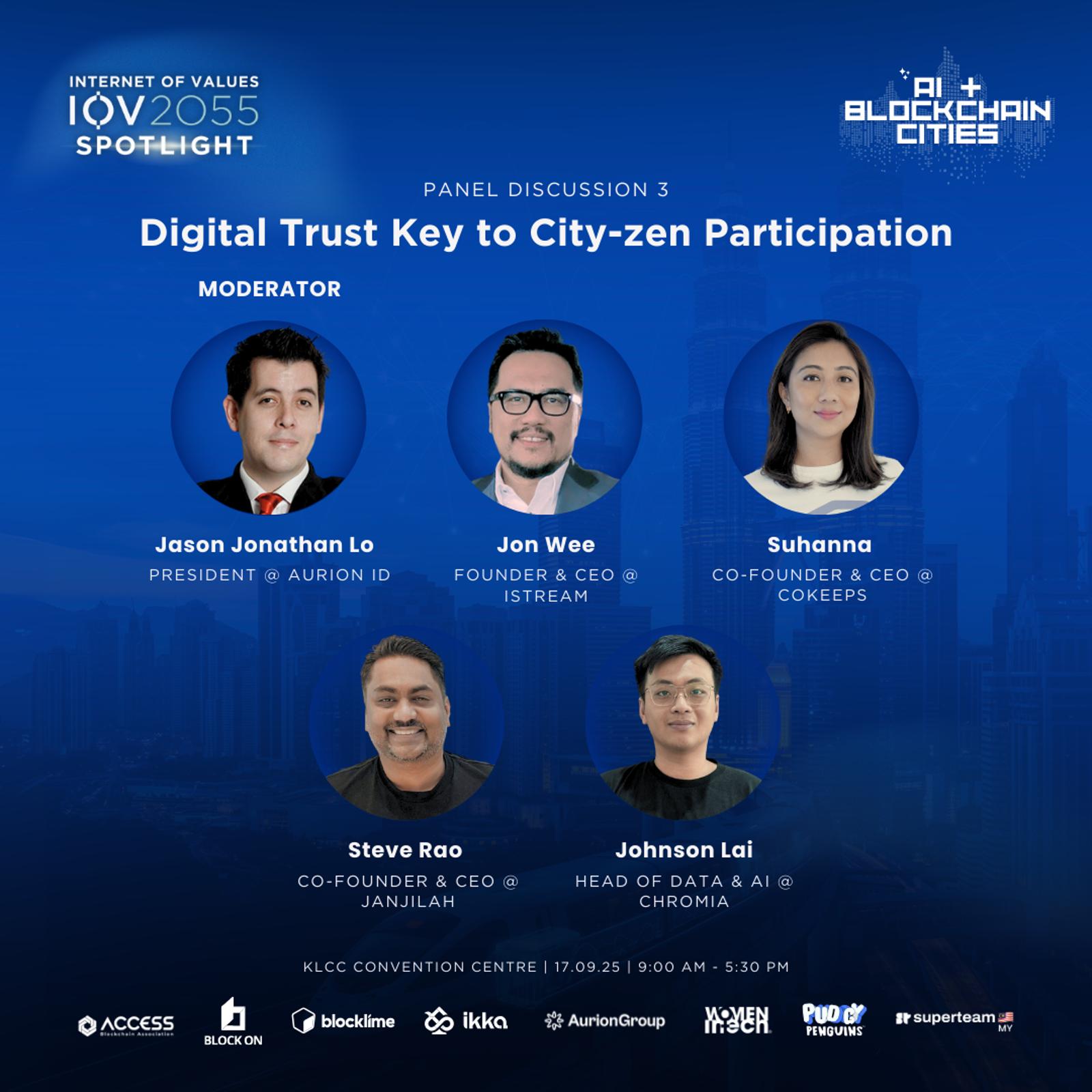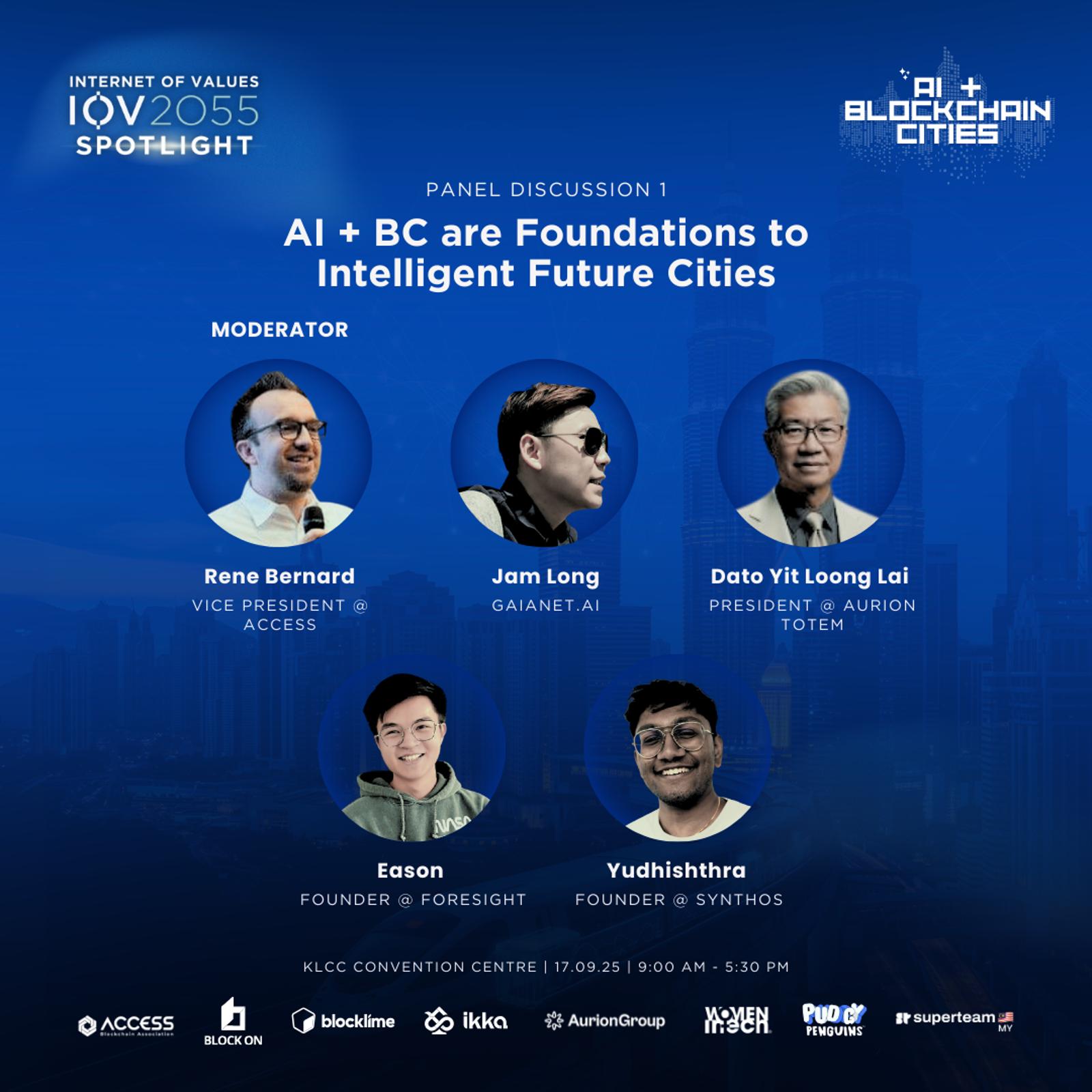 Join us for IOV2055 Spotlight: AI & Blockchain Cities, a full-day event exploring how artificial intelligence and blockchain are reshaping the way we live, work, and thrive in tomorrow’s cities. From equitable access to smarter governance, from empowering women in tech to building trusted digital economies, this spotlight brings together visionaries, policymakers, and innovators to chart the blueprint of future-ready urban ecosystems.