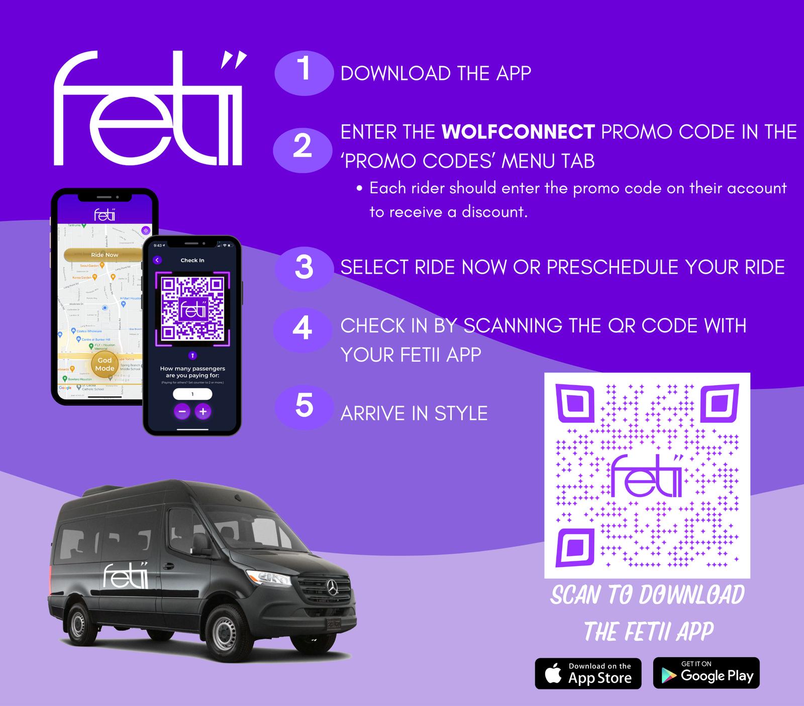 Providing group transportation support to help attendees and partners move easily between activations and fully experience the day. Download the App with code: WOLFCONNECT