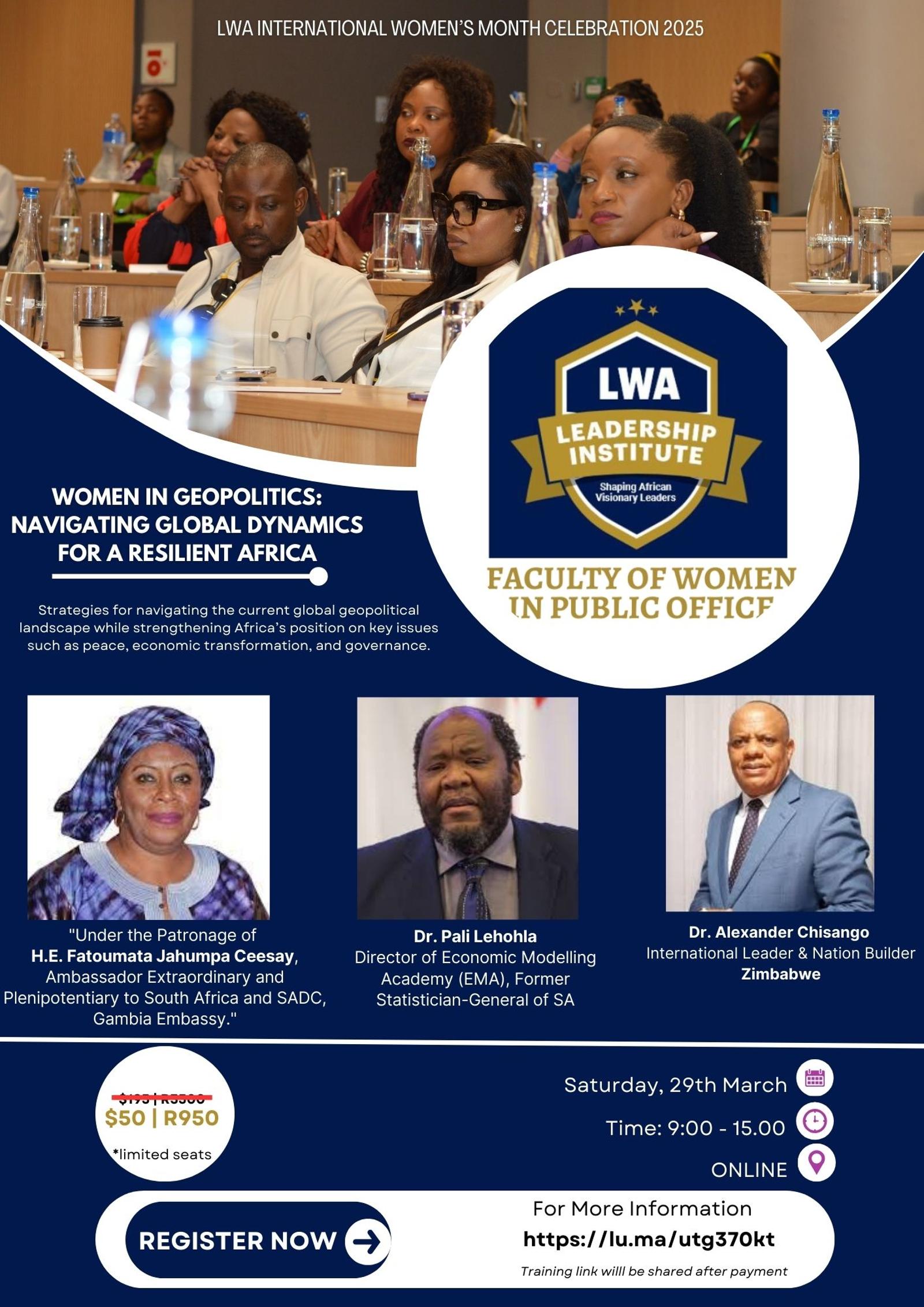 WORKSHOP - Women in Geopolitics – Navigating Global Dynamics for a Resilient Africa, 29 Mar.2025, 09:00 - 15:00 SAST, VIRTUAL