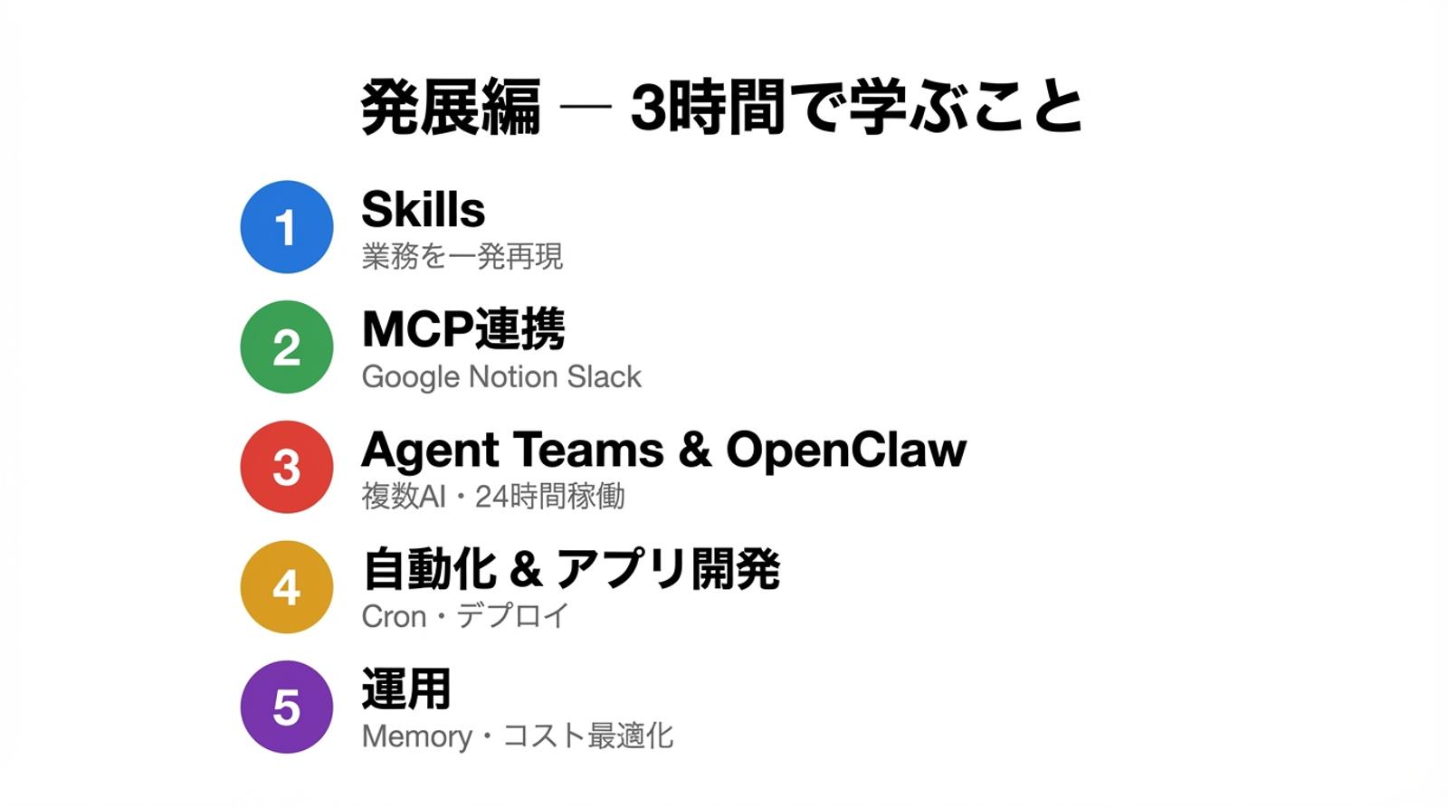 この講座は、Claude Codeを「便利なツール」から「自分専用の業務インフラ」に進化させるための発展講座です。