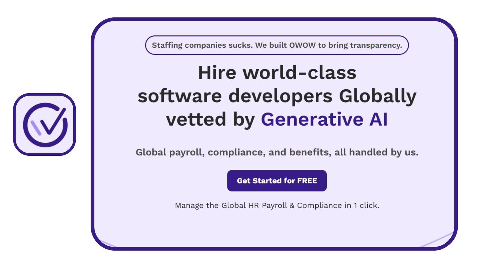 OWOW : Hire world-class software developers, globally vetted by Generative AI. Global payroll, compliance, and benefits—all managed for you on a single platform.