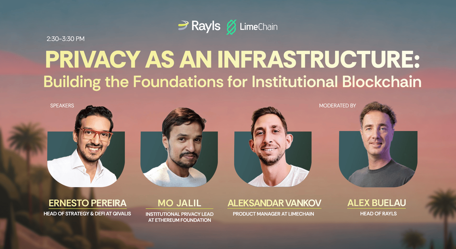 🎙 Panel I — "Privacy as an Infrastructure: Building the Foundations for Institutional Blockchain" 2:30 – 3:30 PM