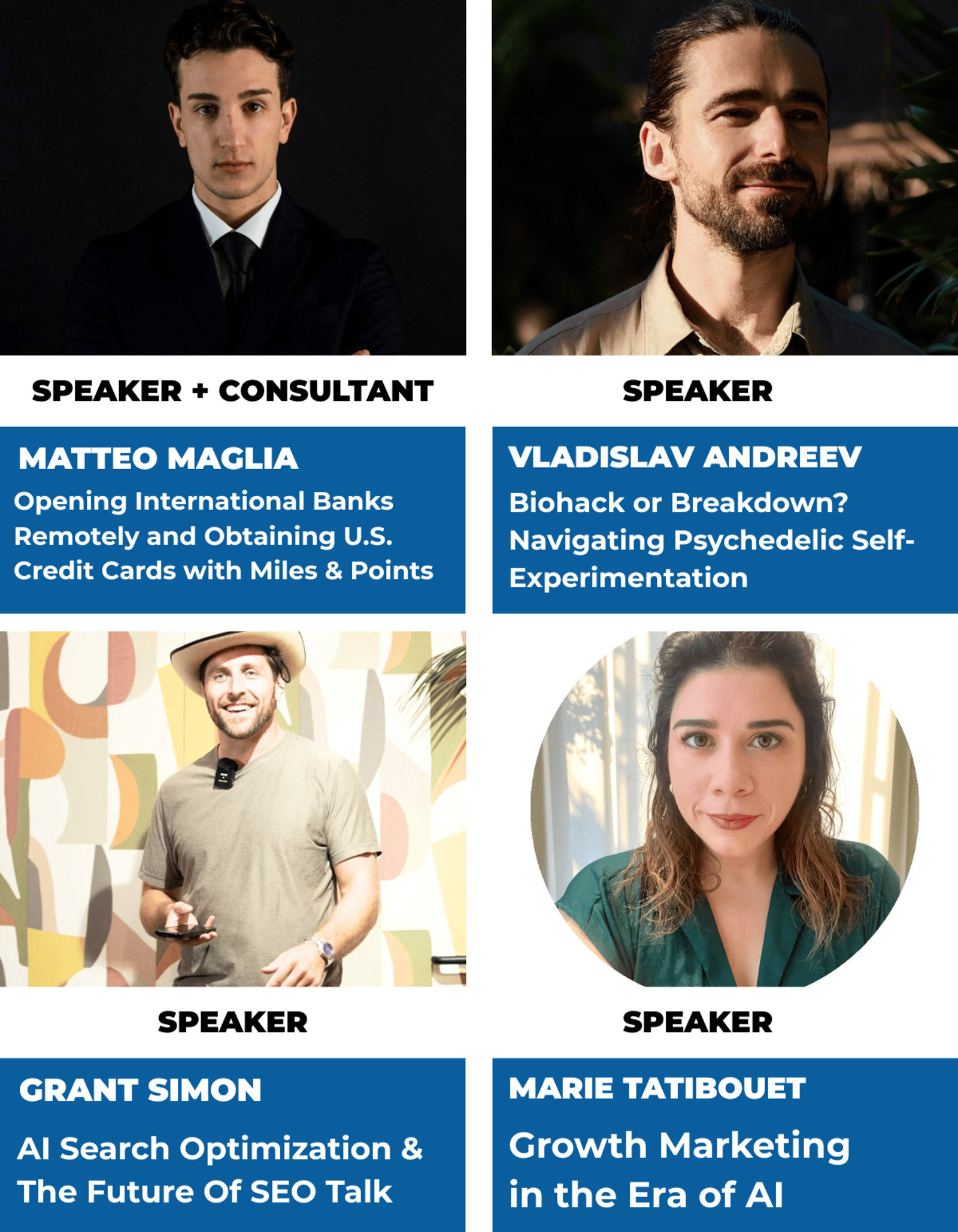 A full-day experience bringing together digital nomads, entrepreneurs, freelancers, locals, and curious minds from around the world. This unique summit blends inspiration, networking, and fun from 12:00 PM to 02:00 AM.