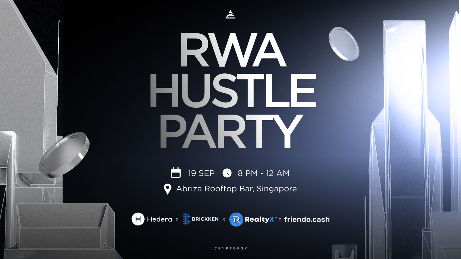 Last fall, we hosted the RWA HUSTLE PARTY at a rooftop bar in Singapore, feat. Hedera, Brickken, RealtyX DAO, and Friendo.cash.