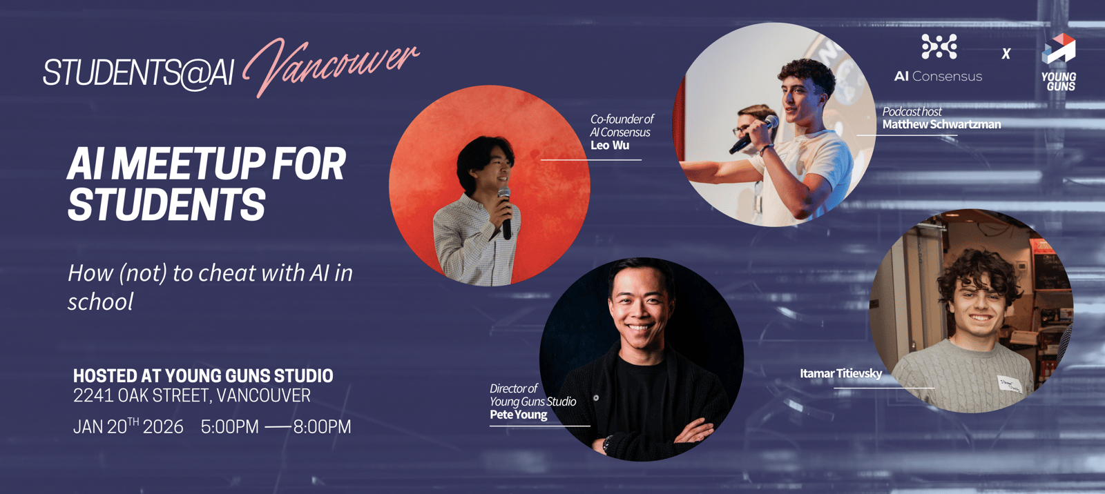 students @ ai vancouver is hosted by young guns studio and ai consensus.