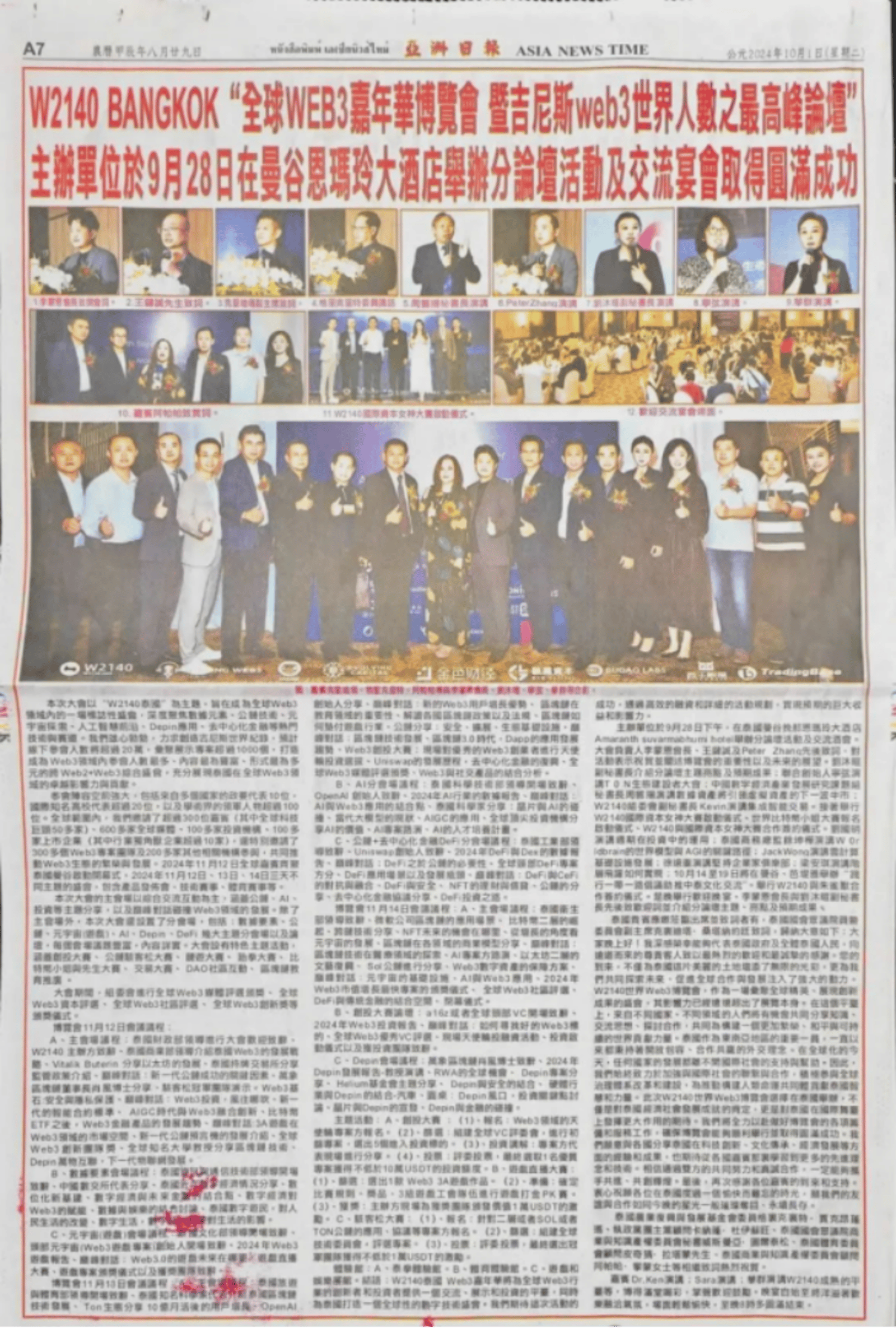 On September 28th, the global launch of the "W2140 World Web3 Expo Bangkok Edition" successfully concluded at the Amaranth Suvarnabhumi Hotel.