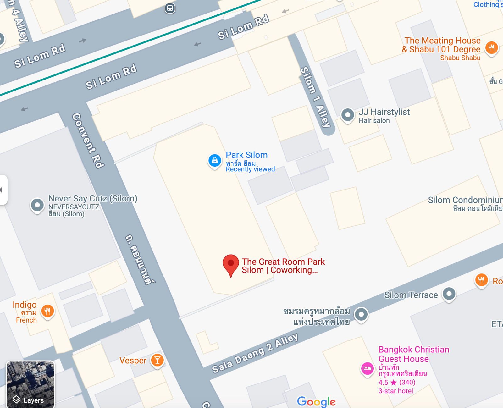 The entrance is through the mall (2nd floor) ---> building lobby ---> take elevator to the 29th floor (The Great Room Park Silom).