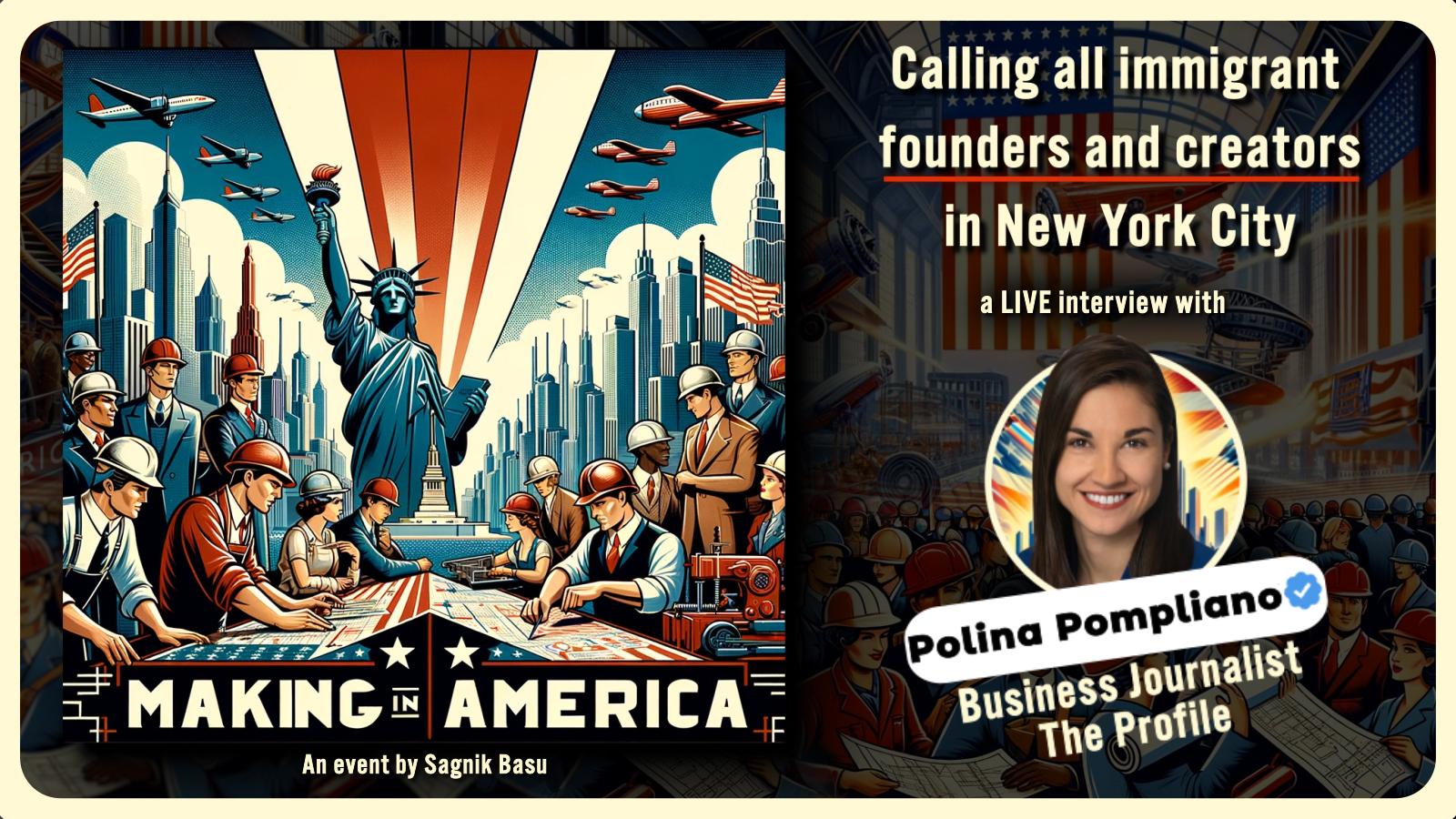 βI will interview Polina about her journey of moving to America, what patriotism means from an immigrantβs perspective, the traits sheβs noticed among immigrant founders, how foreign-born entrepreneurs can come to America and thrive in the competitive business environment, and the pursuit of the American dream.