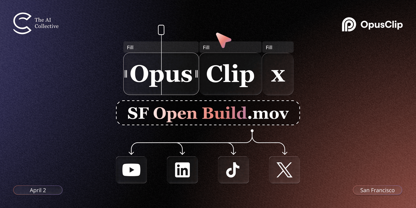 We’re teaming up with OpusClip, the AI video platform behind 10M+ creators, for a hands-on Open Build in San Francisco. With the launch of their new agentic video system, you’ll create, edit, and ship content end-to-end, all in one flow.